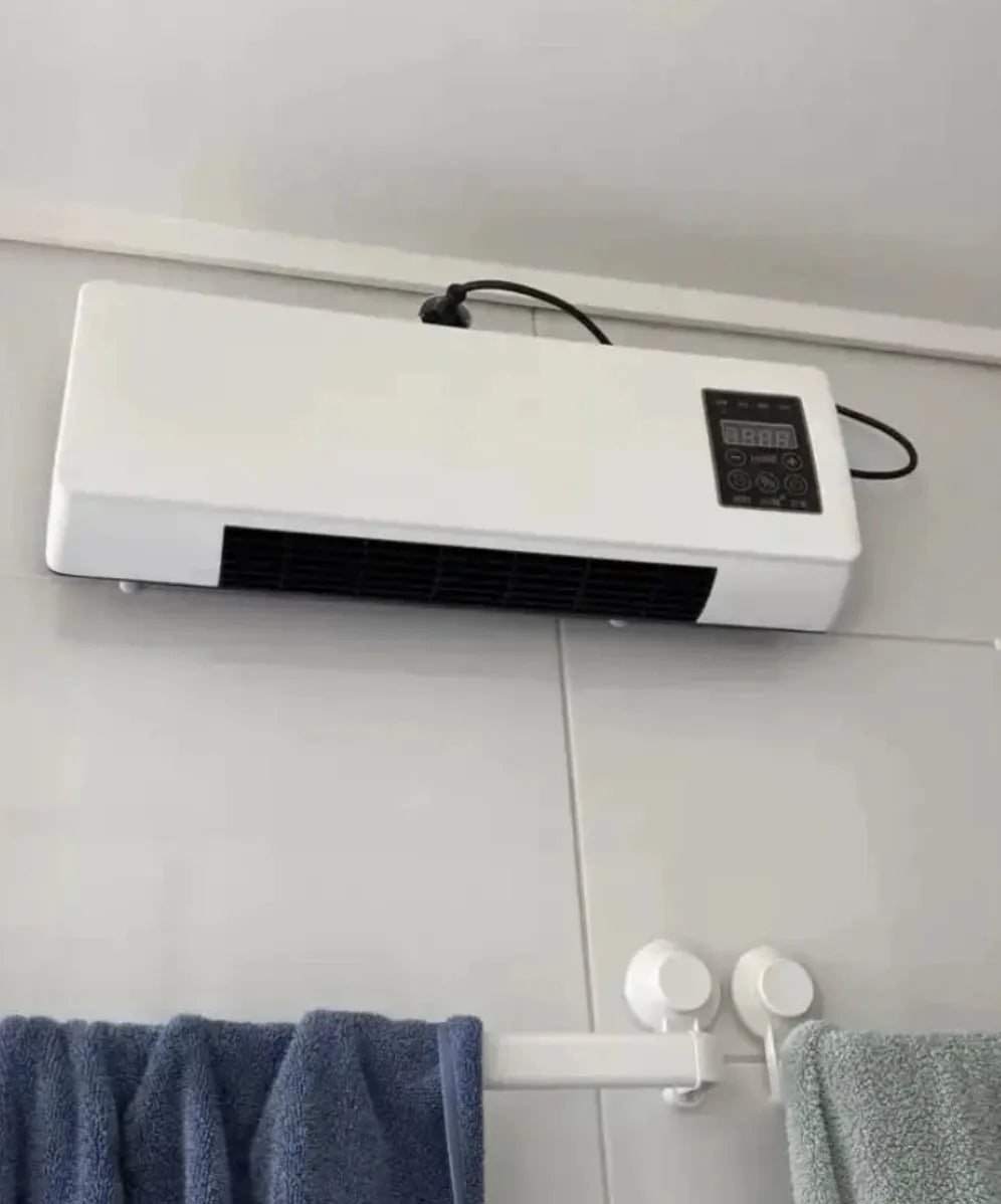 Soțul meu l-a montat în 10 minute. Încălzește baia în 2–3 minute dimineața, iar vara folosim modul de răcire. Telecomanda este foarte practică!