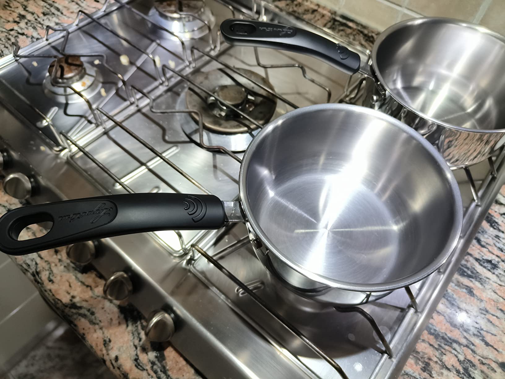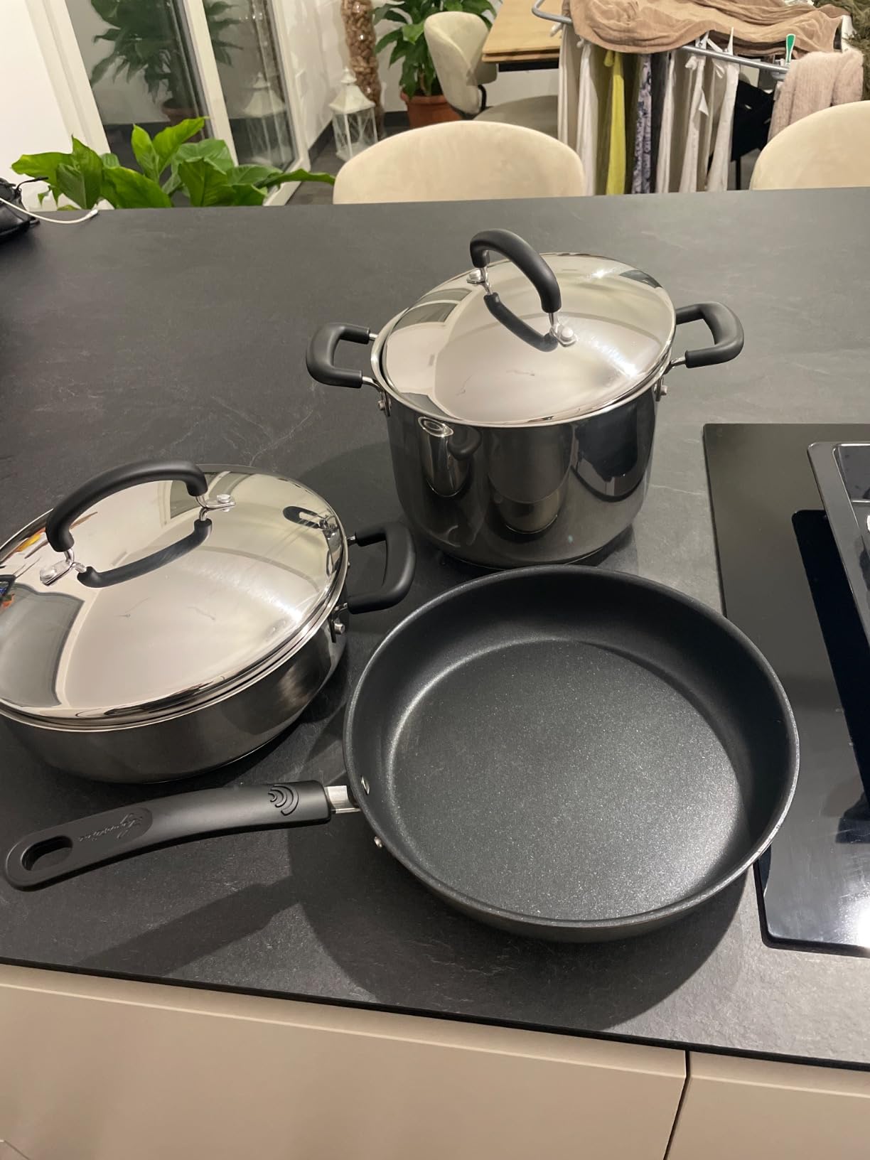 Uso il set su piano a induzione: si scalda rapido e controllo benissimo la temperatura. Le pentole sono stabili, niente ‘ballerine’. Design elegante e poco ingombranti perché si impilano bene. Uso il set su piano a induzione: si scalda rapido e controllo benissimo la temperatura. Le pentole sono stabili, niente... Uso il set su piano a induzione: si scalda rapido e controllo benissimo la temperatura. Le pentole sono stabili, niente ‘ballerine’. Design elegante e poco ingombranti perché si impilano bene.