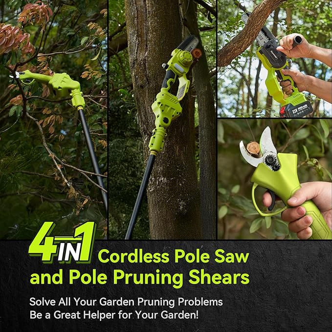 ✅Con la nostra Mini Motosega con Asta, Forbici e Doppia Batteria potrai potare alberi e rami senza fatica e in totale sicurezza, anche nei punti più alti!